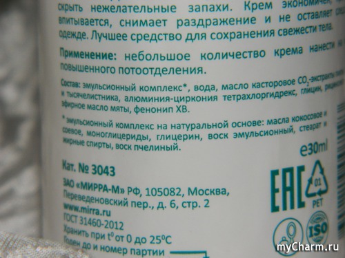 Сегодня я буду говорить об одном из представителей большой косметической «армии» Mirra – Креме-антиперспиранте с дезодорирующим эффектом.