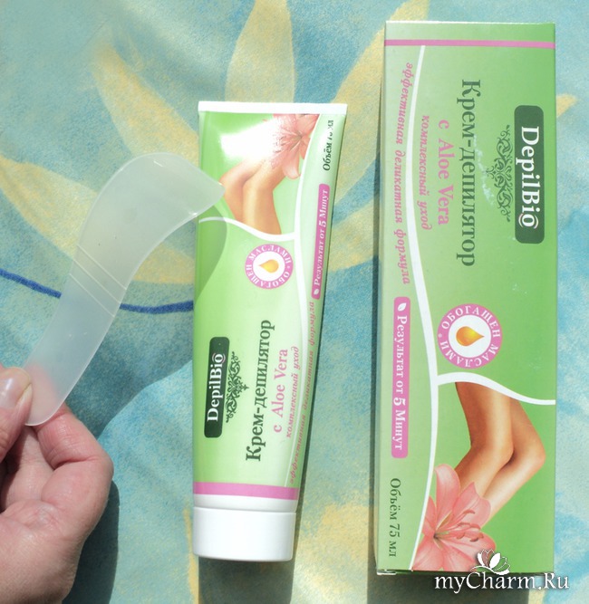 Крем-депилятор от DepilBio – это тюбик 75 мл (не большой, прямо скажу) и пластиковый шпатель.