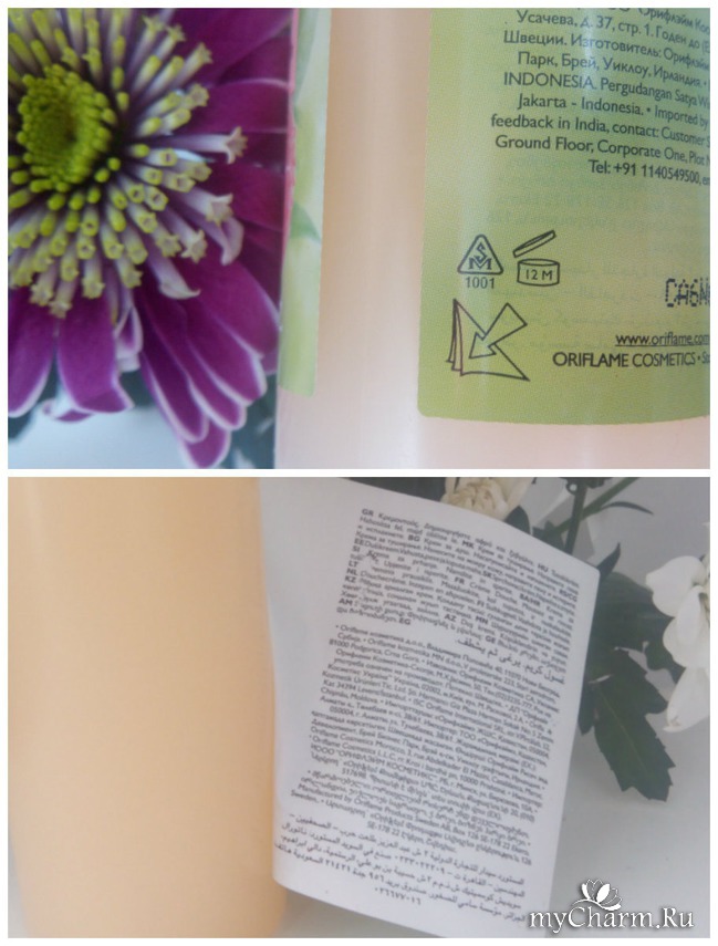 Заглянув туда, я не обнаружила ничего интересного. И в целом информации немного, просто она дублируется на нескольких языках. Кроме состава крема для душа еще написан способ его применения, информация о производителе и импортере.