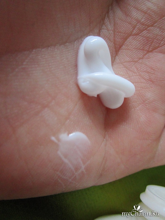 Крем белого цвета, мягкой и нежной текстуры, средней консистенции, которая легко распределяется по коже рук, даря невероятно приятные ощущения. Главное правило эффективности крема, которое я для себя вывела, —тщательно, до полного впитывания вмассировать крем в кожу рук. Тогда я вижу явный результат — напитанность кожи, ее увлажнение и бархатистость.
