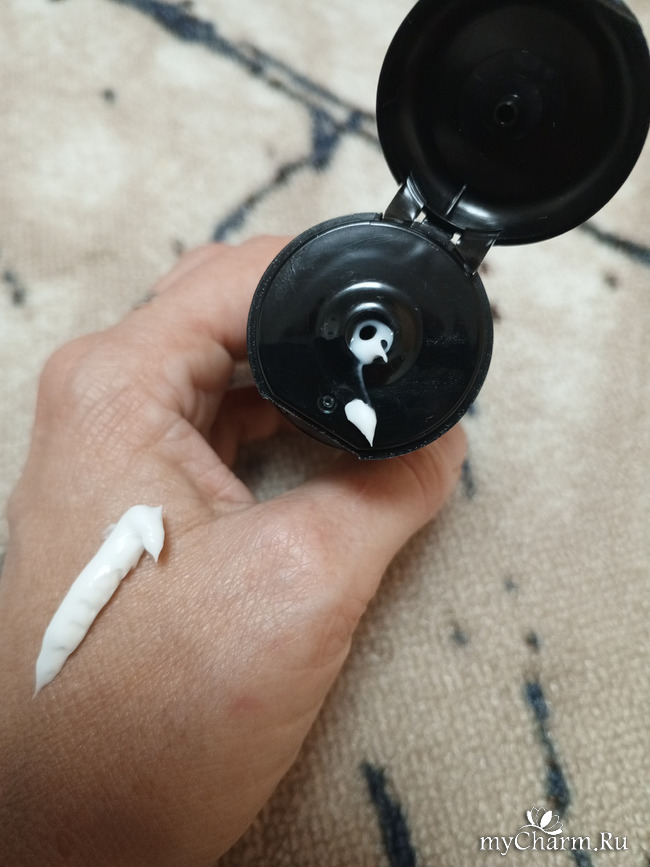 Тюбик на отрез отказался выдавать мне крем, пришлось открутить колпачок. Оказалось, что "носик" тюбика герметично закрыт фольгой, что очень хорошо. Так как можно быть уверенной, что до меня этот крем никто не использовал.