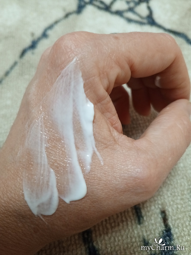 Хорошо распределяется по коже рук, образуя, как мне показалось, невидимую, тонкую плёнку, которая через какое-то время исчезает, а ручки становятся мягкими, шелковистыми, хорошо увлажненными.