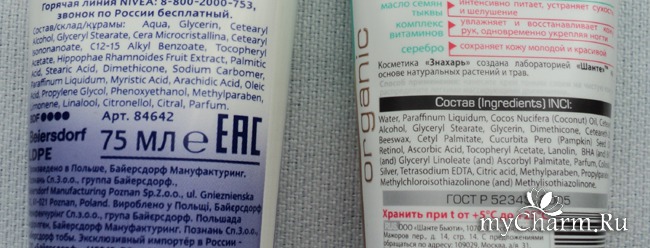 По комплексу консервантов мне Знахарь тоже больше понравился, в нем нет парабенов, в отличие от Nivea.