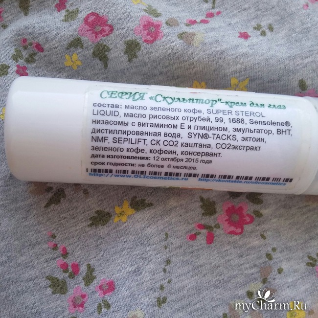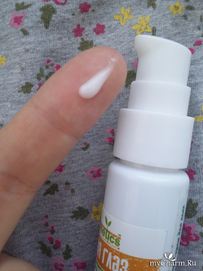 Особенно меня в этом списке заинтересовали экстракт конского каштана, который способен укреплять капилляры; и экстракт зеленого кофе, который здорово тонизирует кожу и повышает её эластичность. Другие составляющие крема призваны оздоровить, защитить и увлажнить нежную кожу век.
