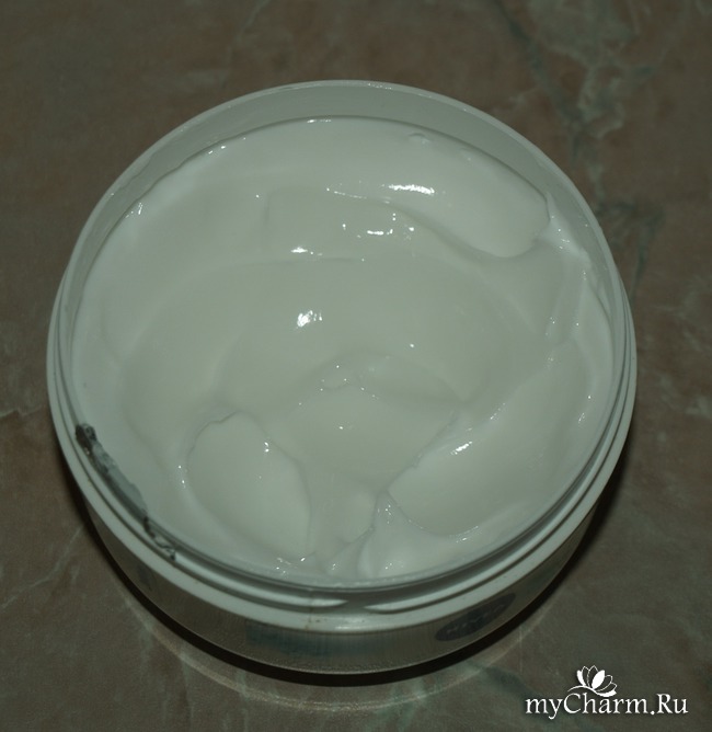 А вот в баночке, которой мы пользуемся, уже половину измазали, кто на что. Ведь на тело надо крема израсходовать значительно больше, чем на лицо. Но зато потом такое приятное ощущение на коже. Крем впитывается очень быстро и хорошо увлажняет кожу.