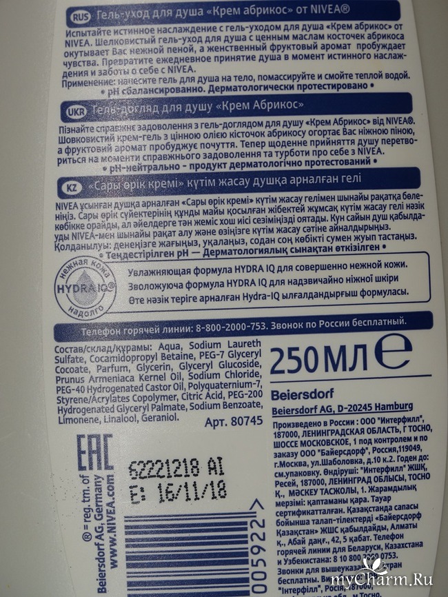 Не так давно я обнаружила в интернете сайт под названием ecogolik.ru, с помощью которого можно проверить натуральность любого косметического продукта, а также его отдельного компонента. И теперь периодически пользуюсь данной услугой. Подготавливая этот обзор, я, конечно же, вновь вспомнила о ней и "отправила на проверку" перечень ингредиентов, содержащихся в гель-креме для душа Абрикос от бренда "Nivea". И вот что получилось.