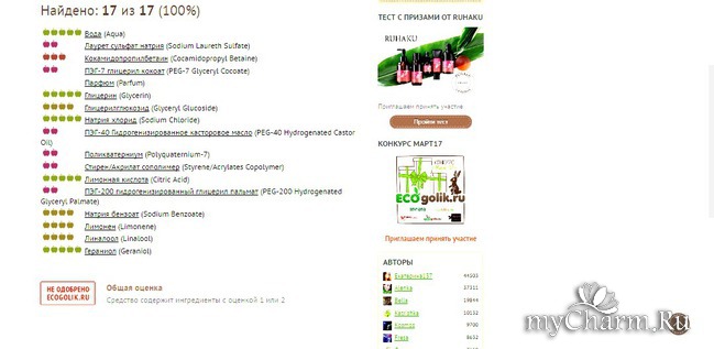 Программа не считает данное средство натуральным, что видно из итоговой надписи: "не одобрено". Если бы состав был полностью натуральным, "вердикт" выглядел бы иначе. А жаль...