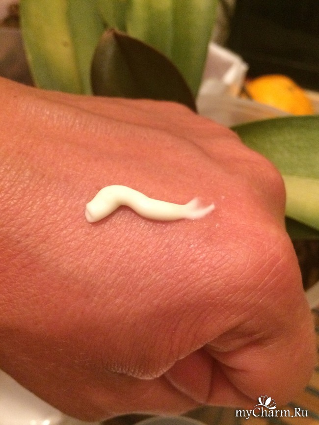 Хочу сказать, что крем мне явно пришелся по душе. У него очень много плюсов. Начну с того, какие он оказал действия на меня. Во-первых, кожа постоянно увлажненная, но при этом нет жирного блеска. Во-вторых, кожа напитана полезными веществами. В-третьих, цвет лица ровный. А еще у меня было еле заметно пигментное пятнышко на коже, так вот после постоянного применения крема оно прошло. Данный факт очень порадовал. Хотя на упаковке нет информации, что средство помогает в борьбе с пигментацией, а вот на сайте про это упоминается. Один раз даже муж как-то намазался моим кремом, после того как побрился. Понравился ему, теперь приходится и с ним делиться кремом. Также в средстве присутствуют УФ-фильтры.