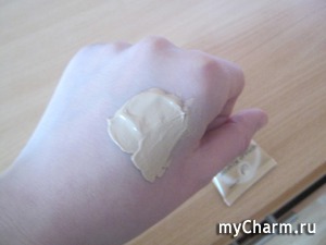 Крем очень легко наносится на лицо (я использую для этого спонж, но думаю, руками тоже можно), не оставляя жирного блеска на коже. Он моментально начинает сливаться с вашим лицом, как бы встраиваясь в кожу. К плюсам можно отнести и тот факт, что средство не оставляет следов на одежде. Видимо, крем на таком глубоком уровне проникает в кожу, что на ее поверхности практически не задерживается. Я ни разу за время использования средства не заметила характерных следов от крема на воротничках одежды, да и вообще нигде.