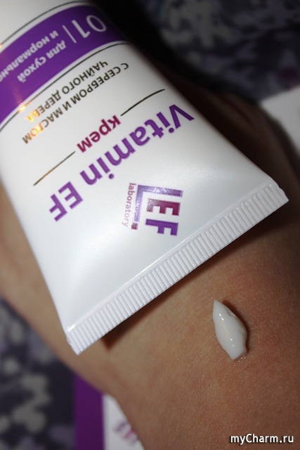 На вид крем сливочного оттенка и довольно густой. Он не обладает ярким ароматом и даже если вдохнуть поглубже ощущаются приятные легкие растительные нотки. Активно растираем состав по коже, наблюдая, как он тает и стремительно впитывается. Никаких жирных следов, никаких пленочек. В этом смысле крем Vitamin EF идеален. Он хорошо питает кожу, разглаживает, устраняет сухость и покраснение, помогает заживлению мелких трещин. Хорош для ежедневного использования и для защиты в непогоду. Оцениваю его как одного из лучших универсальных средств и посвящаю в любимчики семьи!