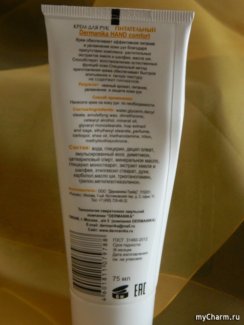 Благо, в больнице был магазинчик. Конечно, выбор там небольшой, но в такой ситуации выбирать не приходится. Таким образом я и приобрела Крем для рук питательный от российского производителя косметики Dermanika (ООО «Дерманика-Трейд»).