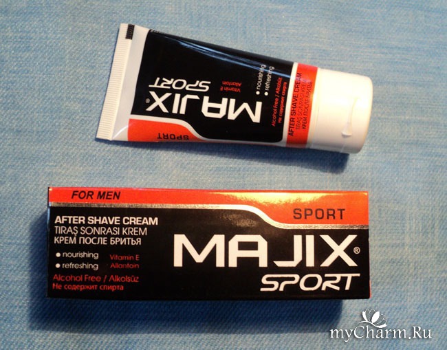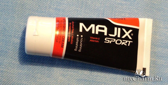 У компании, кстати, есть неплохой сайт на нескольких языках (на русском, в том числе). Оказывается, серьезный производитель, с историей и неплохим ассортиментом. А под именем Majix Sport выходит целая линия средств для мужчин – 20 разновидностей – от пены и крема до бальзама и одеколона. И дизайн, и концепция мне понравились.Итак, внутри – тюбик с кремом. Текстура крема вот такая – это белый и легкий крем.