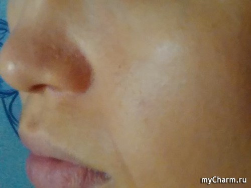 Далее привожу фото кожи лица с тональной основой без крема «Пропеллер» и с использованием него. Прошу прощения, что тоналка нанесена не очень ровно (рядом прыгал и дергал ребенок), но разница все же ощутима.