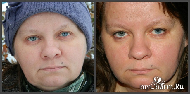 Так как в названии крема есть словосочетание «против морщин», нужно сказать и об этом. Однозначно написать об их сокращении и тем более исчезновении не могу, поэтому представляю вам две фотографии: перед началом применения и спустя месяц.