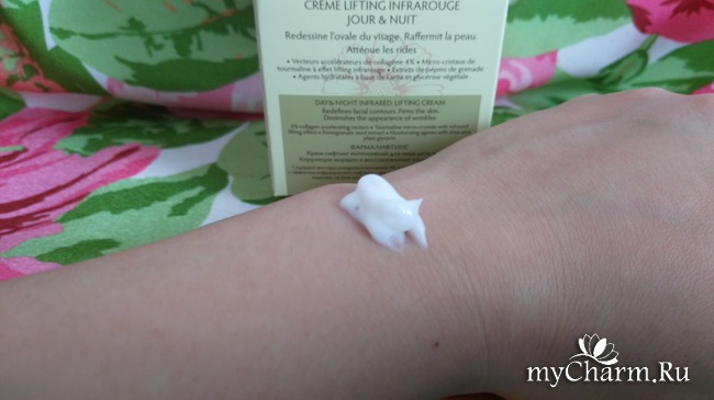И несмотря на то, что крем достаточно питательный, он все же легкий и довольно быстро впитывается, что для меня является огромным плюсом. Во-первых, потому что моя кожа склонна к жирности в Т-зоне, а во-вторых, потому что иногда просто нет времени для того, чтобы ждать, когда впитается крем, и нужно уже быстро приступать к макияжу. Конечно, у меня есть Sos-крем, для таких дней, когда я тороплюсь, но все же для меняя было приятно, что данное средство все-таки быстро впитывается, не оставляя при этом пленки на лице, жирности или стянутости.