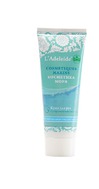 Стандартный тюбик крема имеет и стандартный объем в 75 мл с отвинчивающейся крышкой. Совершенно ожидаемо, что тюбик выполнен в лазурных тонах с изображением волны. Рядом с названием бренда на тюбике можно видеть приписку "bio", ведь L'Adeleide - интеллектуальная биокосметика от российских ученых. И в нашем креме действительно отсутствуют силиконы, минеральные масла, продукты синтетических жиров и нефтехимии, а так же продукты животного происхождения. Сзади можно увидеть знак о том, что продукция не тестируется на животных. Так же можно прочитать состав и на русском, и на английском языках. На иностранном языке я в составах не разбираюсь. Хотя и на русском языке тоже, но бросилось в глаза, что в состав входит несколько экстрактов трав (например, зверобоя, тимьяна, тысячелистника). Не забываем и про море, так что в составе действительно можно заметить и экстракт морских минералов.