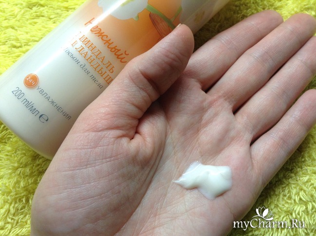 Несмотря на то, что в составе мы встретили метилпарабен, я все же пользуюсь этим лосьоном, но не часто. Конечно, когда приобретала, я не смогла полноценно состав изучить, т. к. не было возможности без интернета гуглить каждый ингредиент. Тем не менее, набираю немного крема на руку, смотрим. Лосьон жидковатый, консистенция жидкой сметаны, структура однородная молочного цвета. Благодаря такой консистенции лосьон может беспрепятственно увлажнять и те места, где есть волоски. Это я к тому, что лосьоны используются на любых частях тела, где требуется увлажнение.Результат: