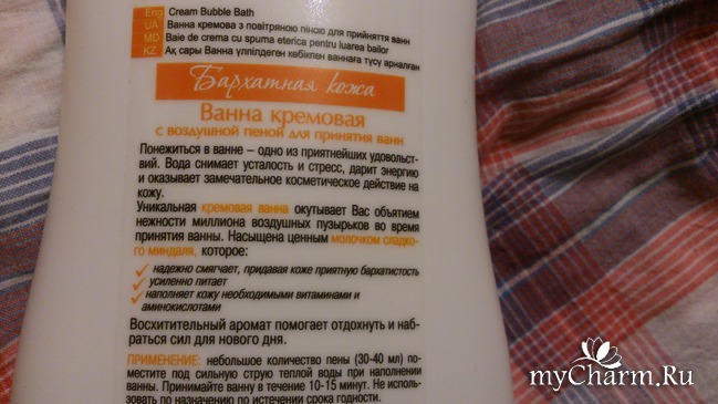 После принятия ванны с пеной лично я не люблю пользоваться еще и гелем для душа – чтобы очистить тело и побрить ноги вполне хватает этого одного средства. Кроме того, не хочется перебивать миндальный аромат, а его вы будете чувствовать на коже еще пару часов после выхода из ванной комнаты. Также будет благоухать и сама ванная, заметьте: аромат довольно стойкий. Возможно, кому-то это не понравится, но я довольна, даже иногда захожу в ванну, чтобы просто понюхать средство, аромат такой глубокий, обволакивающий, уютный… Самое то для промозглой дождливой осени!