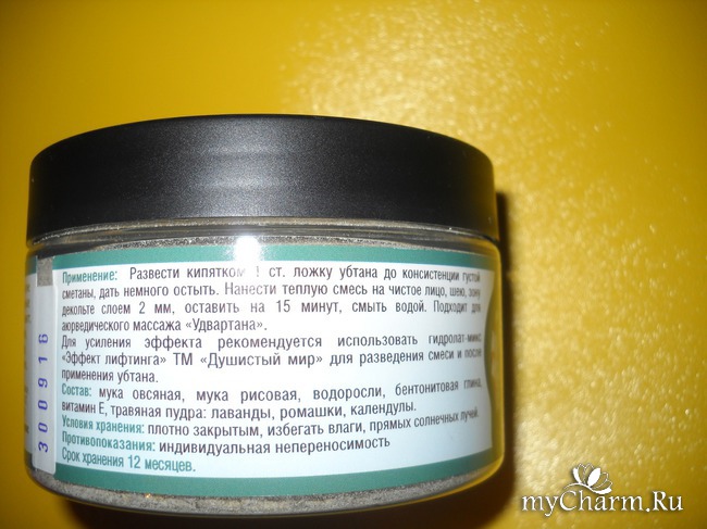 Кстати, для усиления эффекта от применения данного средства производитель рекомендует приобрести гидролат-микс с ласкающим слух названием «Эффект лифтинга» - его можно использовать как для разведения состава, так и после применения самого убтана. А еще данный убтан идеально подходит для аюрведического массажа под названием «Удвартана».