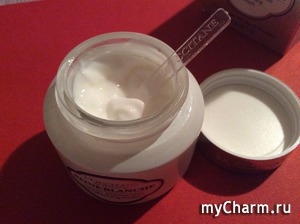 Итак, что мы имеем: 50 мл чудесно пахнущего крема очень легкой текстуры (слегка более жидкий, чем обычно бывает с другими кремами) со специальной лопаткой-ложечкой для того, чтобы из баночки его аккуратно доставать. Сама упаковка очень лаконичная и сдержанная; баночка из пластмассы, но выглядит вполне себе презентабельно.