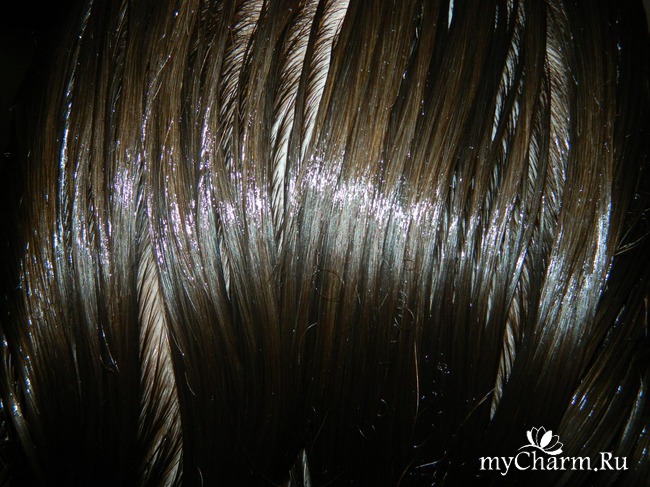 На волосы средство наносится легко, и они сразу становятся другими. Даже не знаю, как точно описать свои ощущения… Когда по ним проводишь расчёской, они поскрипывают, и реально кажется, что их обволакивает желатин.