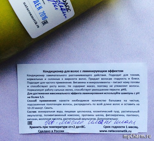 Немного подробнее о составе, или чем примечателен кондиционер с ламинирующим эффектом от Natacosmetik.