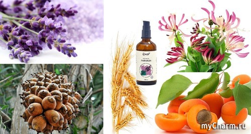 - абрикосовое масло (экологически чистый натуральный продукт, способный оказать экстренную помощь уставшей, сухой, обезвоженной коже, нуждающейся в заботе и витаминах; улучшает цвет и придает здоровый вид, тонизирует, повышает упругость, устраняет мелкие поверхностные морщинки, интенсивно питает и смягчает)