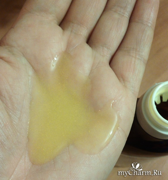 Шампунь имеет достаточно удобную упаковку, хоть и не привычную по оформлению. Цвет у шампуня нежно-желтый с перламутром и небольшими вкраплениями, которые никак не ощущаются.