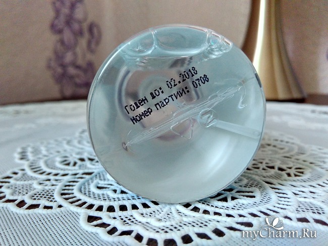 Оформление флакона очень приятное, и, уже глядя на него, чувствуешь прохладу и свежесть. Сам флакон прозрачный, поэтому легко уследить, сколько еще средства осталось неиспользованным.