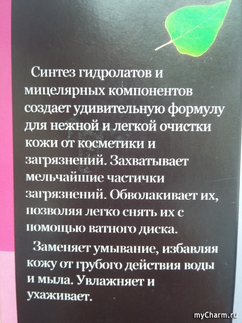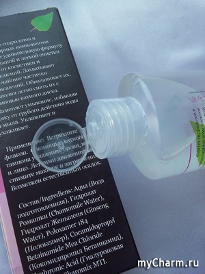 Описание от производителя привлекает, ведь средство обещает не только эффективно очистить кожу от косметики и загрязнений, но и увлажнить, освежить и успокоить её.