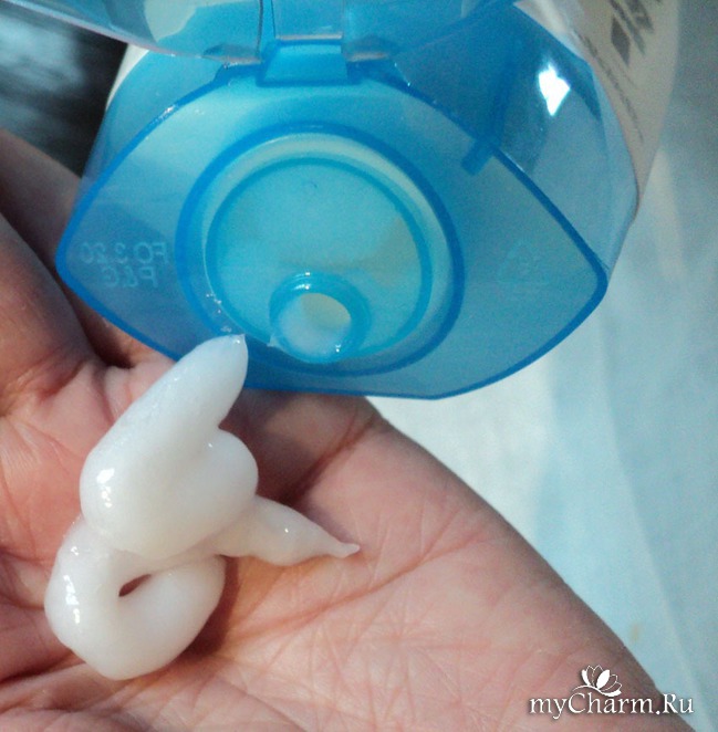 Средство густое, по фактуре больше напоминает очень густой йогурт. Очень здорово распределяется по волосам – быстро, в одно мгновение. И классный аромат! Это та же самая лаванда, что и у шампуня, но на этот раз запах чистый, легкий, благородный.Ощущение легкости волос появляется уже в процессе применения, какое-то свежее дыхание для кожи головы! Смываю легко, без усилий, бальзам на волосах почти тает, а легкость и аромат остаются на волосах. Наверное, летом этот бальзам будет незаменим – небольшой охлаждающий и облегчающий эффект имеется. Влажные волосы не слепляются бальзамом, не спутываются.