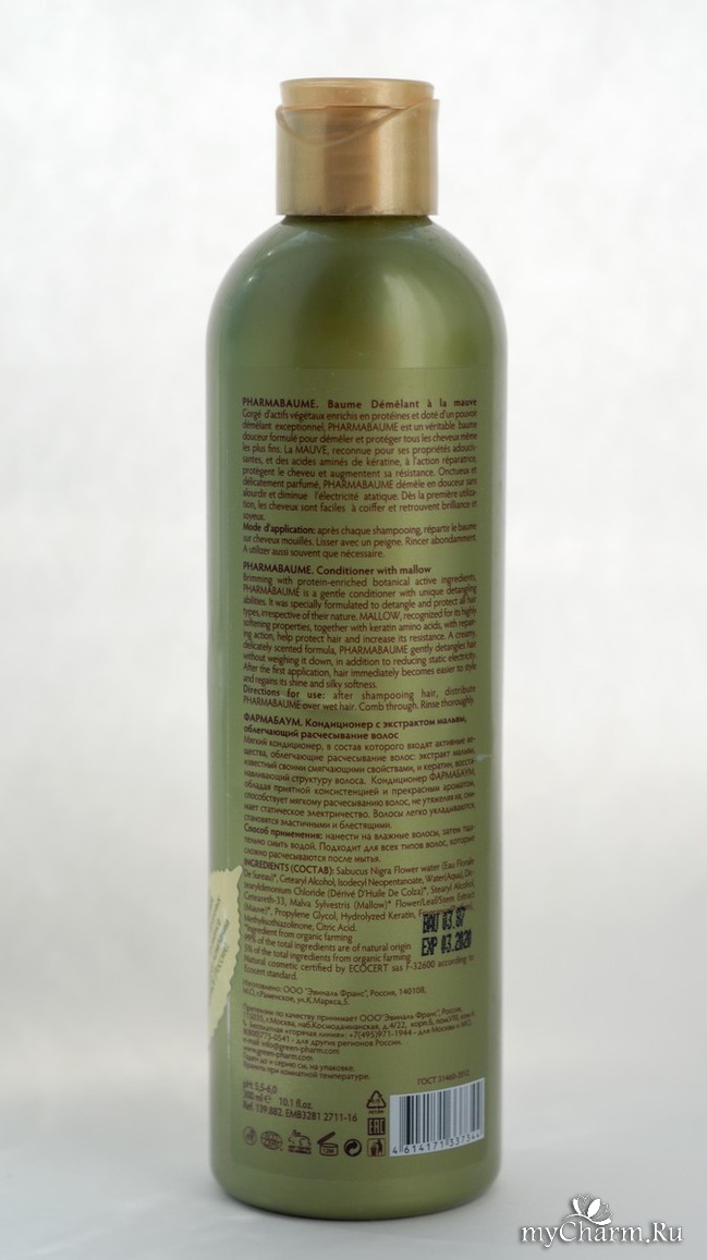 Применение довольно-такие обычное. Я использую Кондиционер для облегчения расчесывания от Green Pharma после того, как помыла голову шампунем этого же бренда. Кстати, обзор на один из них я уже писала здесь: https://www.mycharm.ru/kosmetika/obzory/farmacedra-spasenie-dlya-zhirnyh-volos/