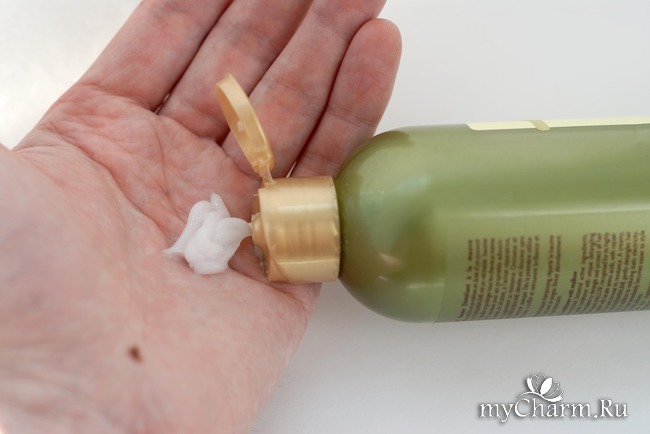 Кондиционер достаточно густой по консистенции, размыливается хорошо, обволакивает каждую волосинку. Аромат, как я уже говорила, божественный! Свежий, манящий, природный.