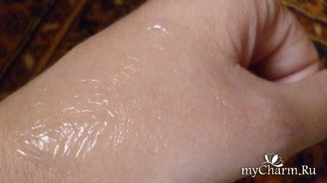 Плотная гелевая субстанция мгновенно впитывается, даря коже рук отличное увлажнение, но, увы, не длительное. Пожалуй, это единственный ощутимый минус данного аква-геля.