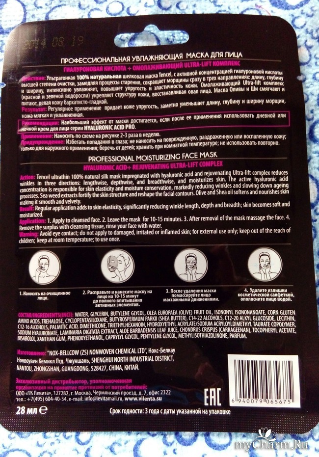 Пользоваться маской «Маска для лица профессиональная увлажняющая» Hyaluronic acid pro от Vilenta мне понравилось. По поводу уменьшения морщин ничего сказать не могу, т. к. курсом маску не использовала, но на заметку себе эту маску взяла, на будущее.