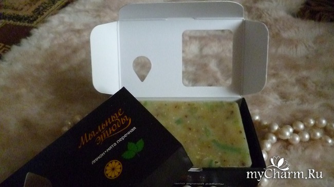 Открываем упаковку и перед нами заветный мыльный брусочек, благоухающий потрясающим лимонно-мятным ароматом!