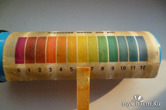 Если кто сомневается, что спиртовое средство может иметь PH баланс, приближенный к норме (5,5-5,8), привожу эксперимент на индикаторной бумаге.