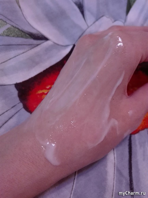 Посмотрите, лосьон имеет йогуртовую консистенцию, такой воздушный. Очень легко распределяется по коже, причем необходимо совсем небольшое количество.