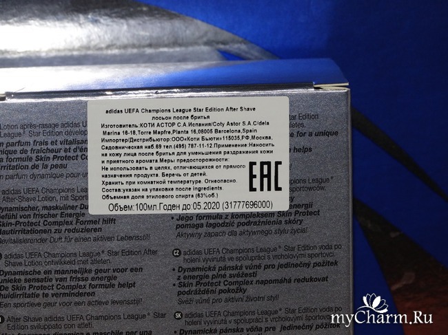 Представляю вашему вниманию лосьон после бритья "UEFA Champions League" от бренда Adidas.