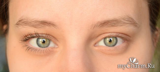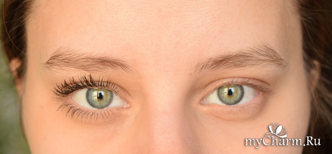 Здесь (на фото слева) можно увидеть тушь на ресницах, нанесенную одним слоем.