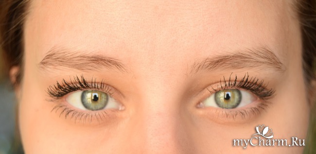 Что еще мне нравится, что ее очень легко смыть мицеллярной водой. То есть если вдруг я попала под дождь, она не ползет по лицу, превращая меня в панду, но когда необходимо ее смыть, не нужно сильно оттирать глаза. Она легко сходит и не оставляет следов между ресничками.