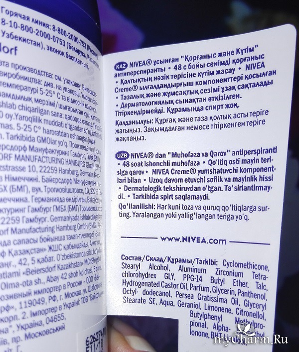 - Антиперспирант содержит компоненты Nivea Creme. Обладает нежным, тонким ароматом крема Nivea.