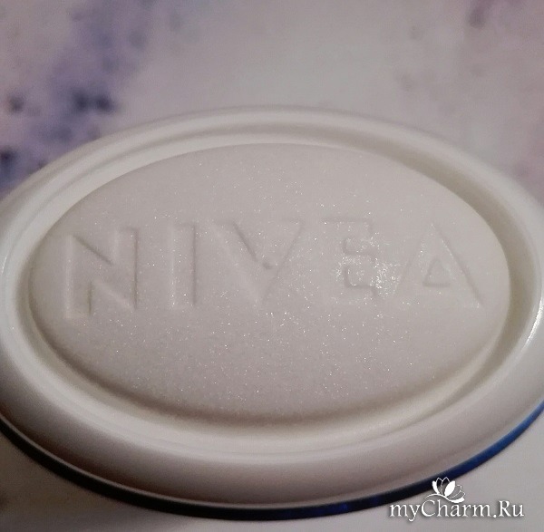 На белом сверкающем фоне красуется выгравированная надпись «NIVEA». Обычно такие милые надписи встречаю на тенях, на дезодоранте в первый раз.