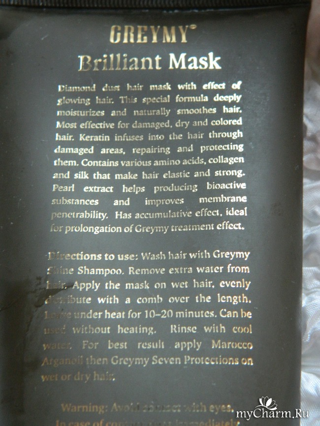 Бриллиантовую маску от Greymy Professional использую еженедельно в течение практически двух месяцев. После первого же применения коллега отметила, что волосы стали более блестящими на вид и сильными, и даже спросила, не сделала ли я какую-нибудь специальную салонную процедуру. Волосы, действительно, стали лучше выглядеть, на ощупь - приятные, шелковистые.