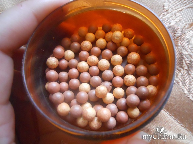 В баночке 22 г шариков. Бронзатор имеет три основных цвета – песочного цвета, медного и кофейного цвета.