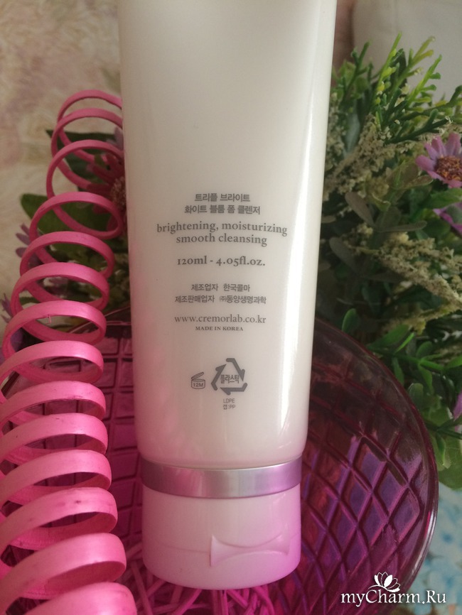 Консистенция средства густая, напоминает крем. Но стоит только нанести средство на влажное лицо и немного помассировать, как крем превращается в приятную пенку, которая не просто приятно пахнет, а еще и деликатно очищает кожу.
