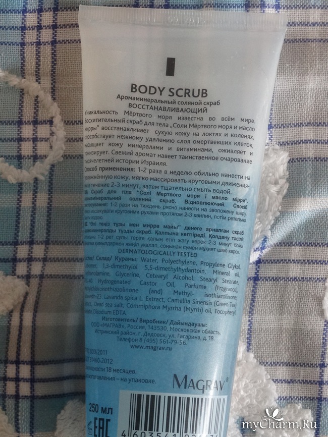 И вот, в качестве одного из первых таких продуктов ко мне попал Скраб Israel body scrab cкраб для соли Мёртвого моря и масло мирры серия "Клуб путешественниц" от ранее незнакомого мне бренда Magrav.