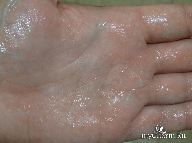 Средство слегка прозрачное, в меру густое. Один в один напоминает... гель для тела.