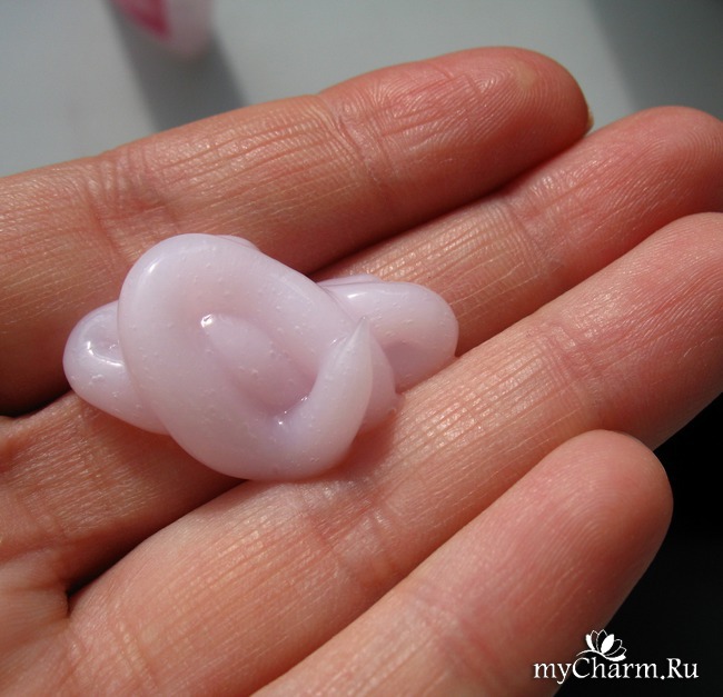 Бальзам очень густой. Если перевернуть флакон - средство не спешит стекать вниз. Цвет нежно - розовый, запах довольно нежный и приятный.