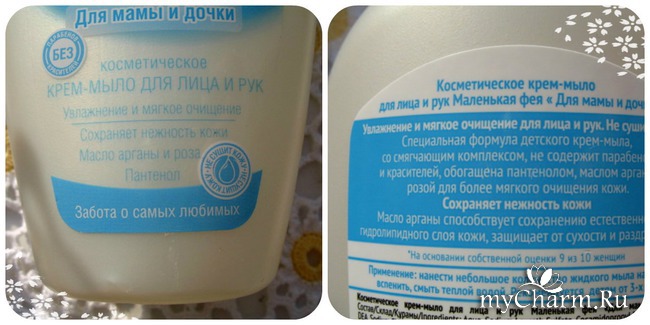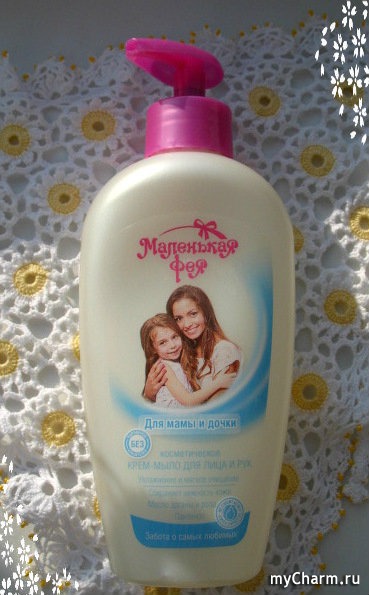 Красивый вытянутый флакон с дозатором, выполненный в нежных тонах говорил о том, что содержащееся в нем крем-мыло предназначено для мамы и дочки! "Ах, как это мило!" - подумала я, разглядывая эту чудесную картинку. И в то время, как глаза продолжили поиск привычного мне мыла, руки как-то сами собой потянулись к манящей новинке.